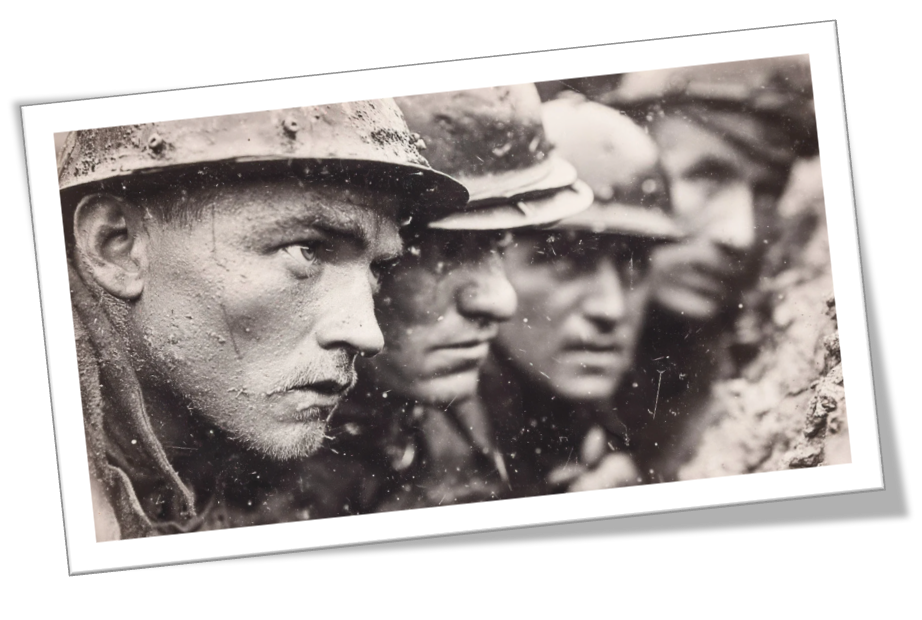 You arrived together. You trained just enough. You learned each other’s voices in the dark and each other’s shapes through gas masks. You share cigarettes, water, letters, and silence. You know who jokes too loudly, who stares into the distance, who whispers prayers into the earth.
